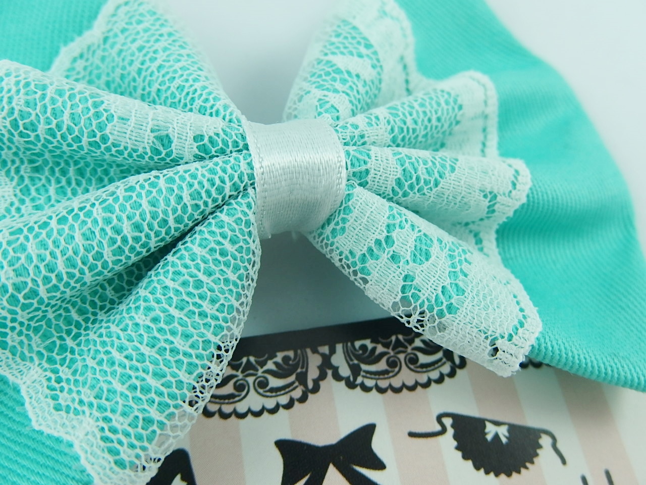 Aqua Fabric Hair Bow with White Lace Overlay