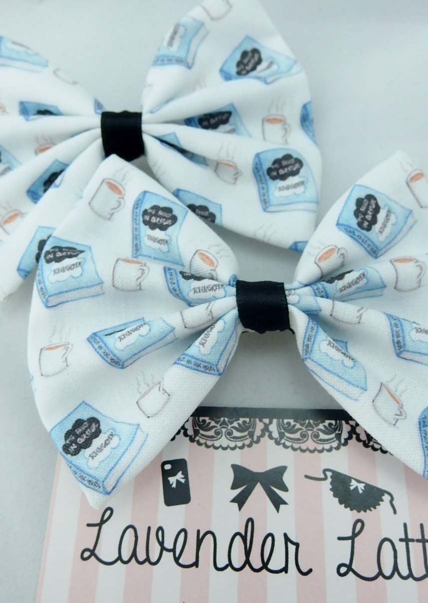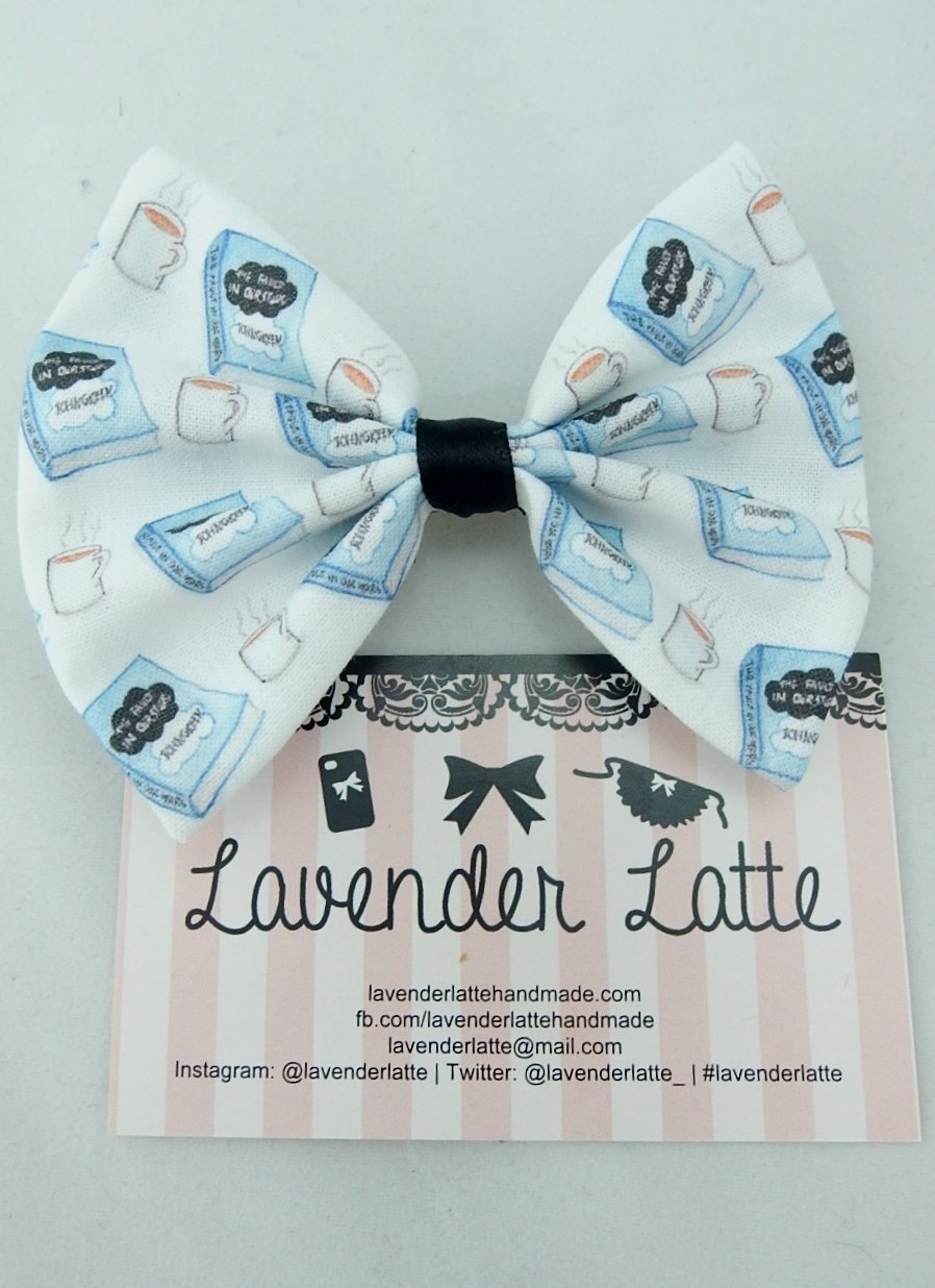SALE! Okay? Okay White Book and Coffee Printed Fabric Hair Bow TFIOS Inspired Hair Accessory
