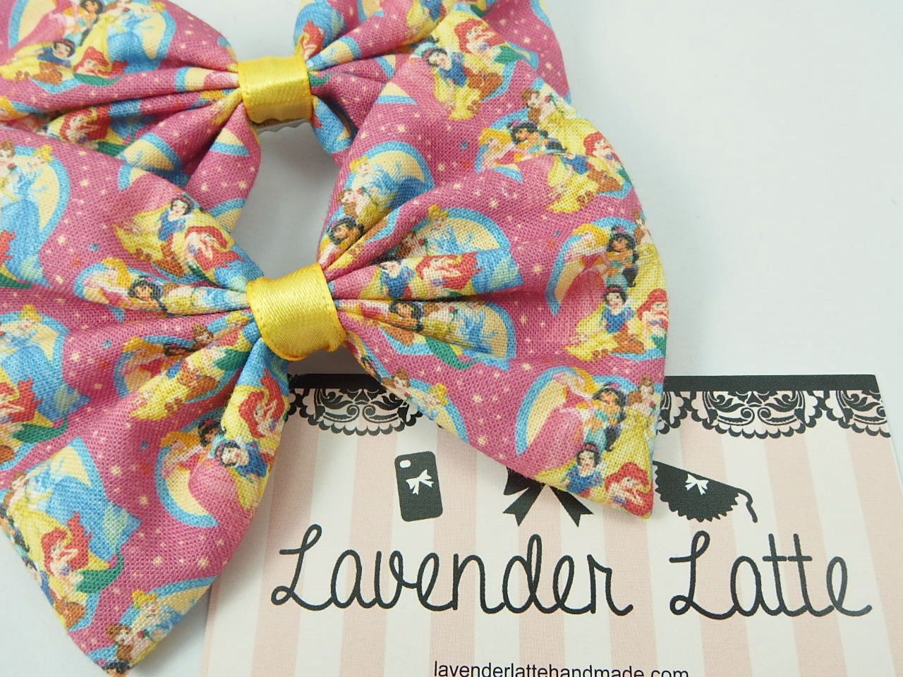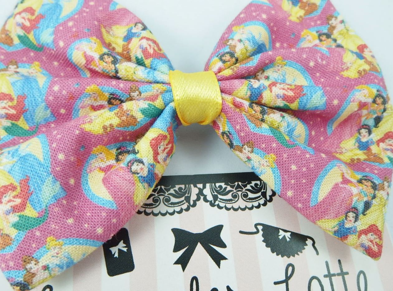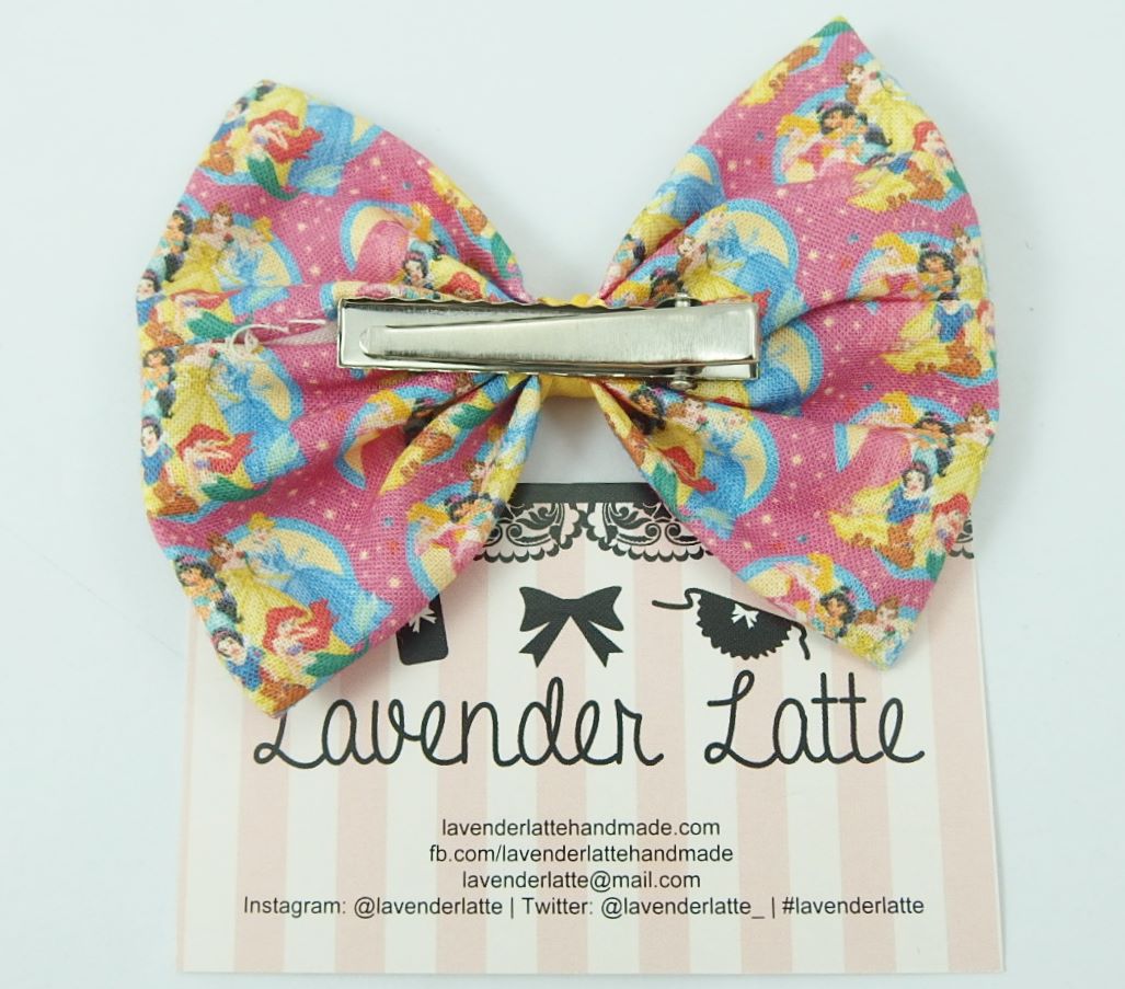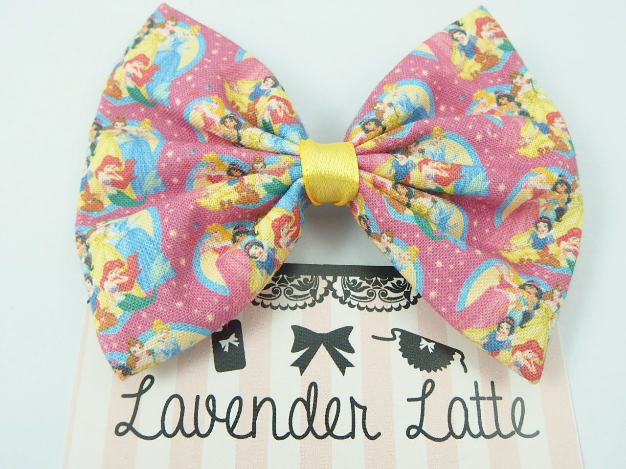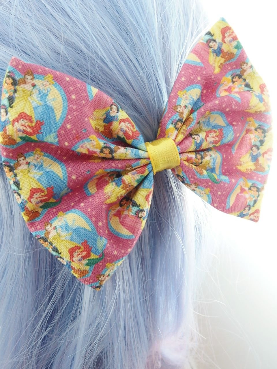 Pink Princesses Fabric Hair Bow - Jasmine Belle Ariel Snow White Cinderella