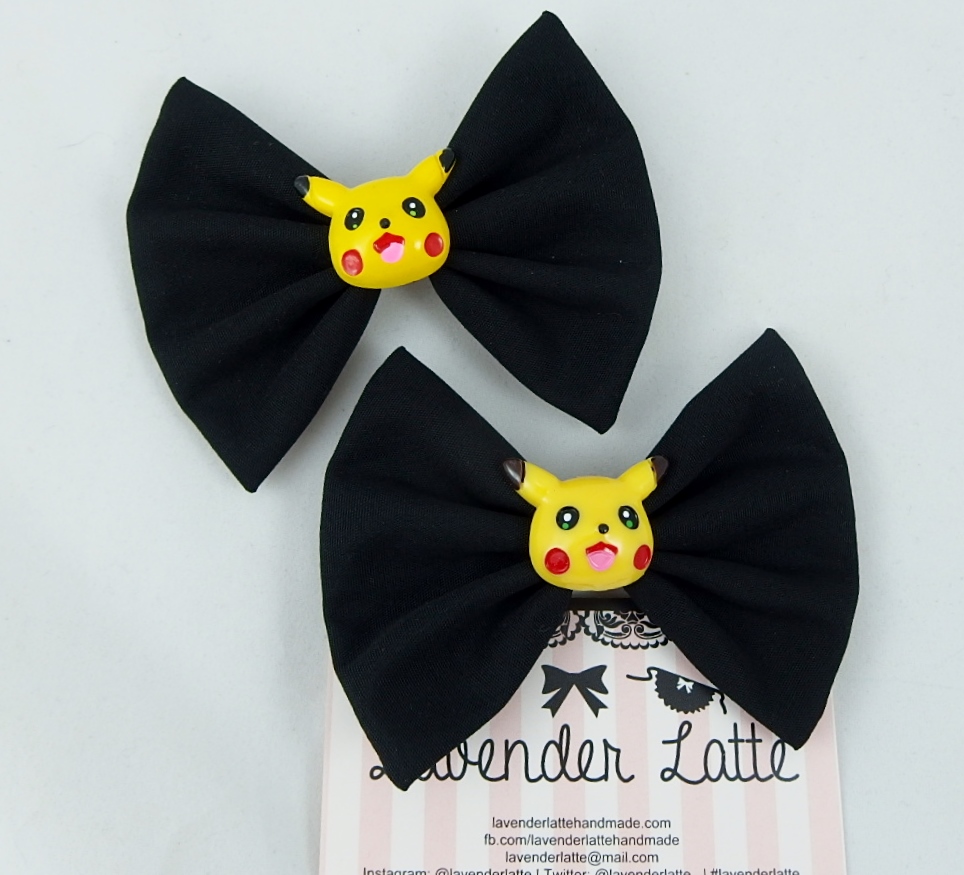 Pikachu Head on Black Fabric Bow Pokemon Kawaii Hair Accessory