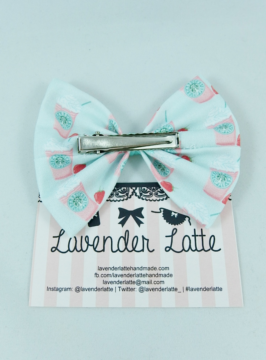 Strawberry Frappe Pastel Mint Green Hair Bow with Coffee