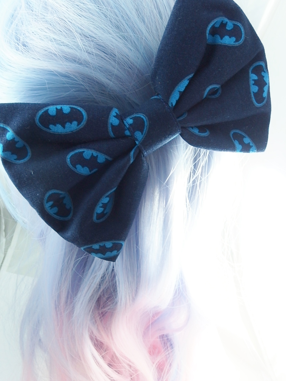 Navy Blue Batman Logo Large Fabric Bow - Superhero Hair Clip