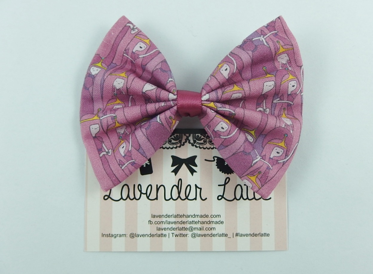 Princess Bubblegum Fabric Hair Bow -- Pink Handmade Hair Clip