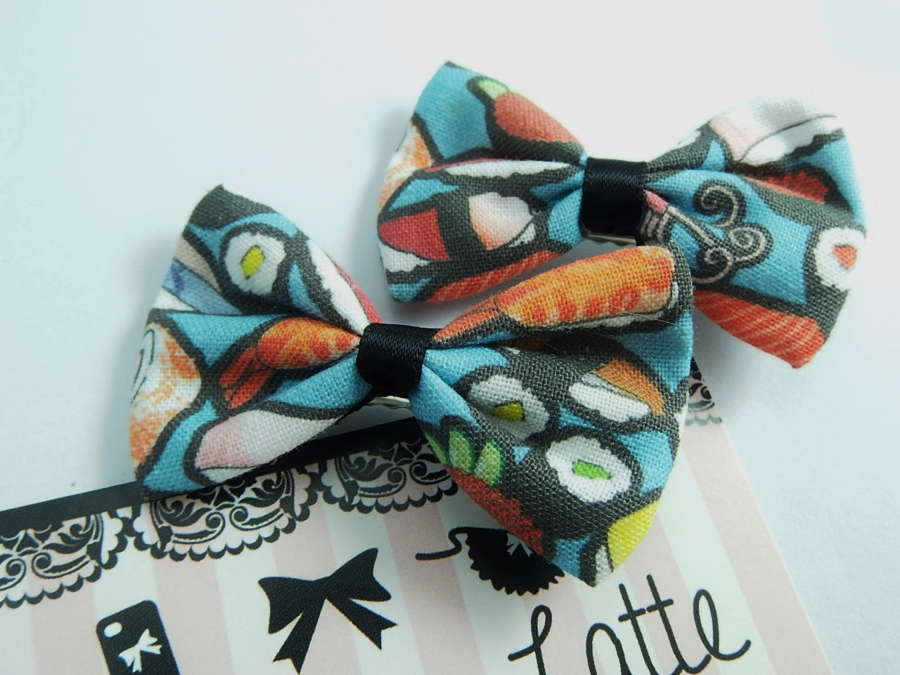 Kawaii Teal Sushi Mini Printed Fabric Hair Bow